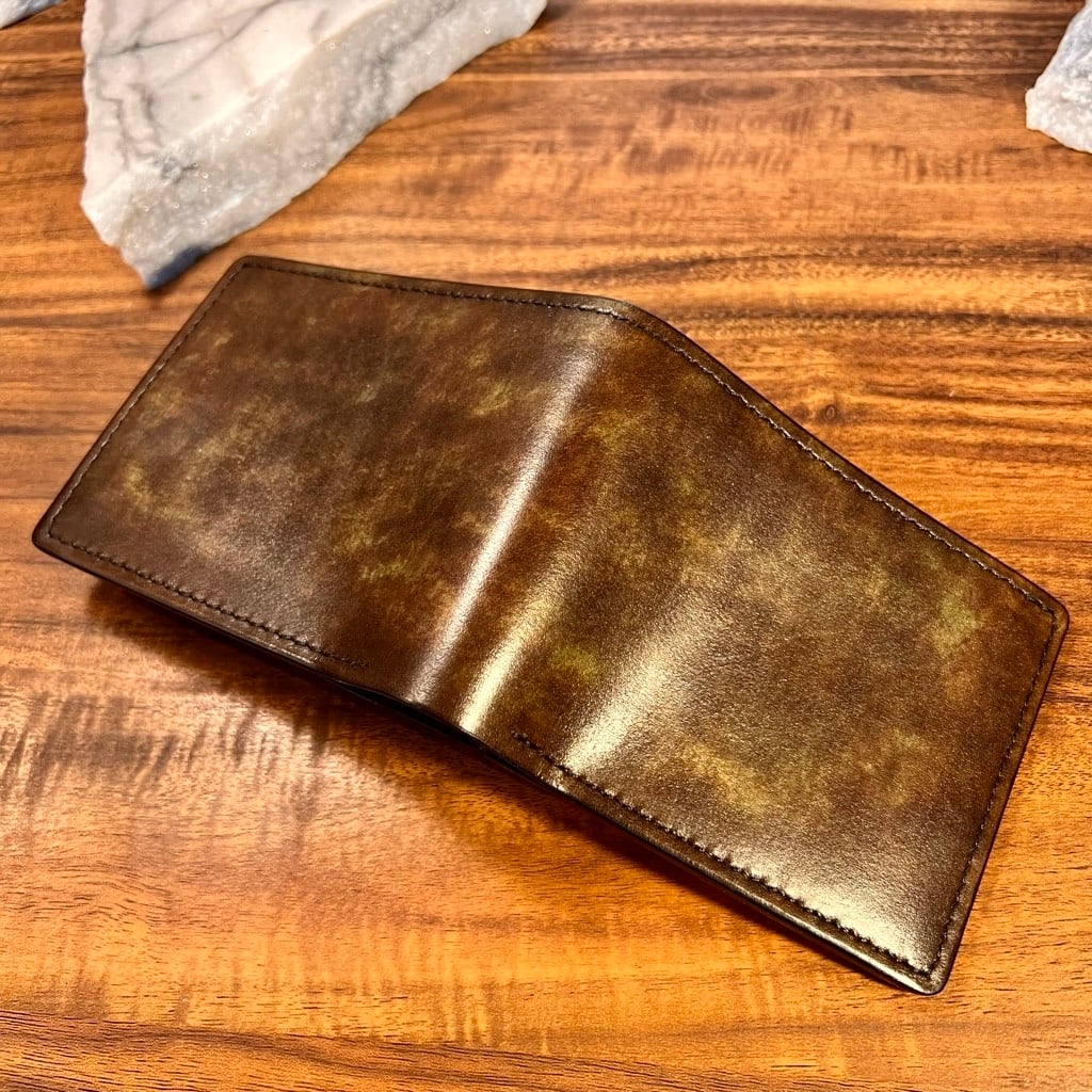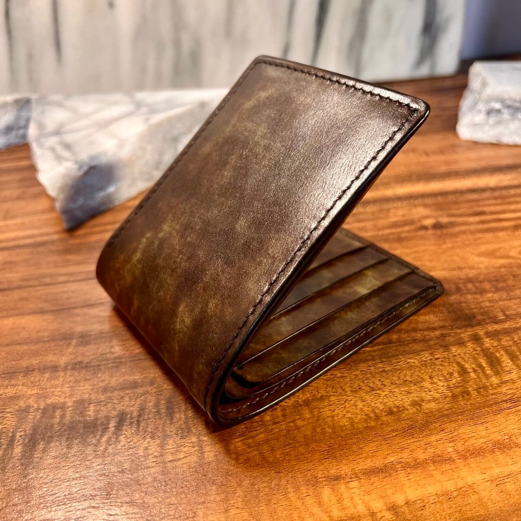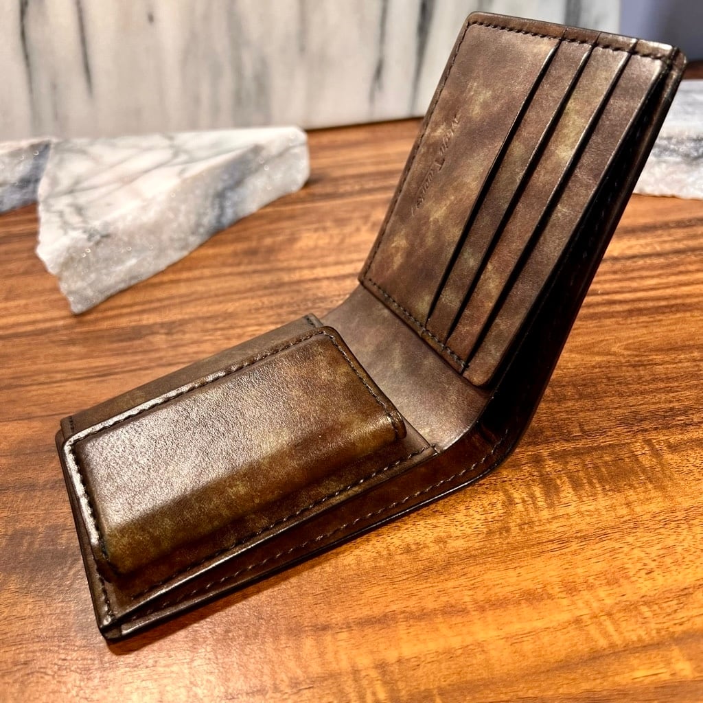 液体染料を本革に浸透させて、本来の革の質感を失わずに経年変化も感じられます。