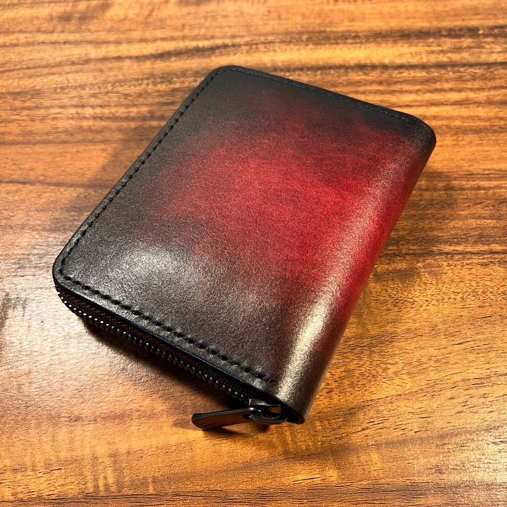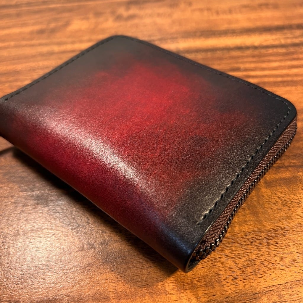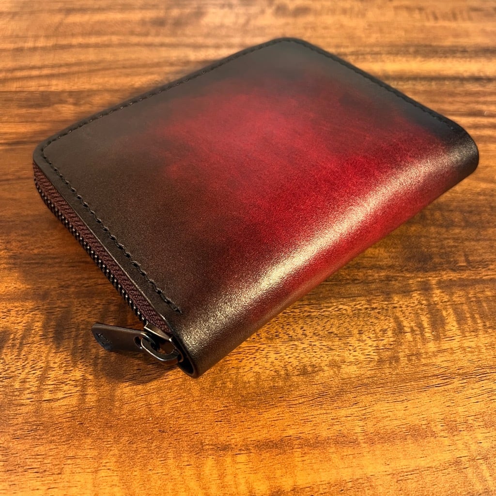 エクセラファスナーを使用した深みのあるワインレッドの一点もの財布です。