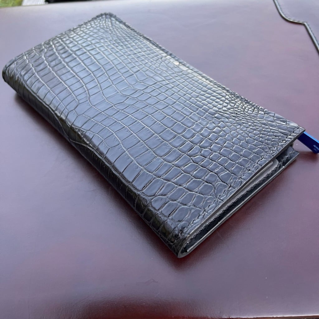 クロコダイル(ワニ)の革で作るL字ファスナー長財布です。